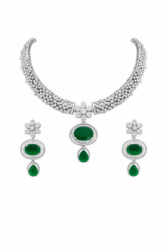 Raahi Emerald Bloom Diamond Necklace Set