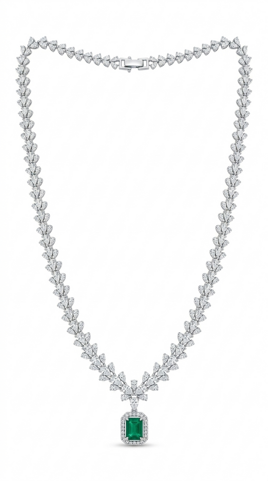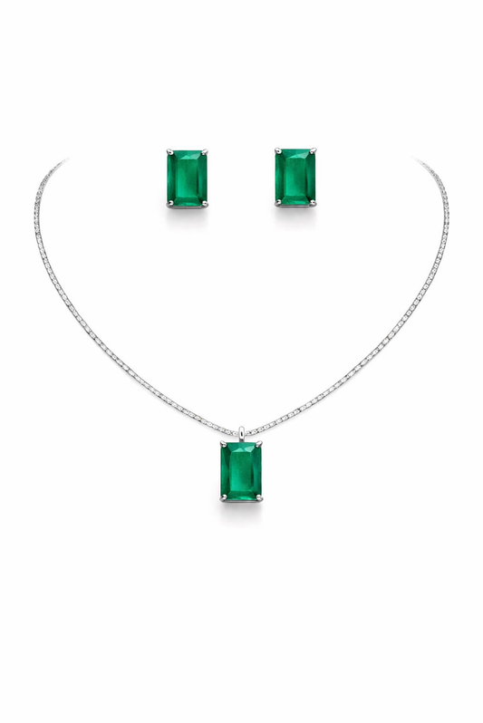 Alina Emerald Drop Diamond Necklace Set
