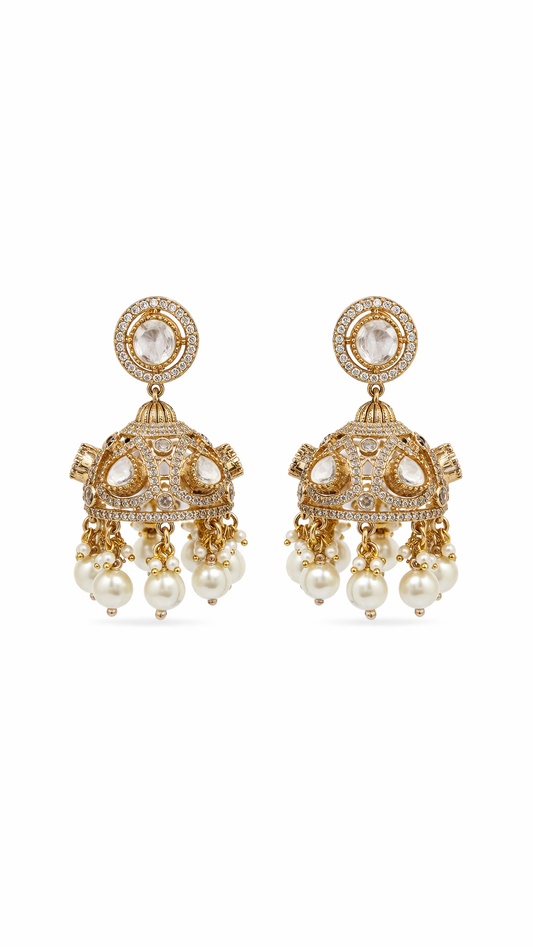 Madhuri Polki Pearl Jhumka Earrings