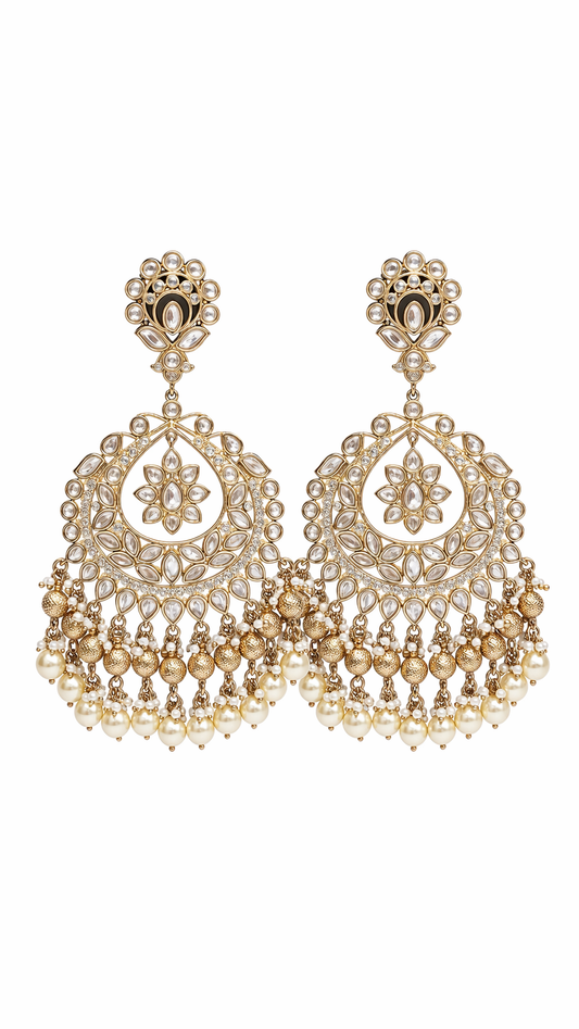 Meher Noor Pearl Polki Chand Earrings