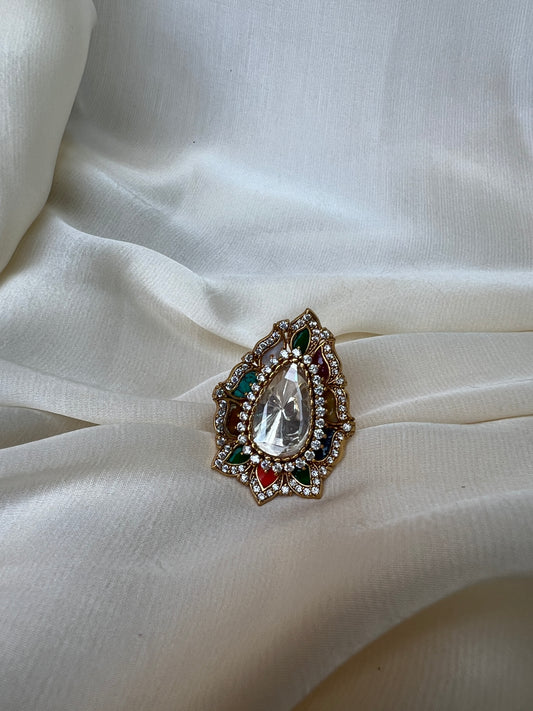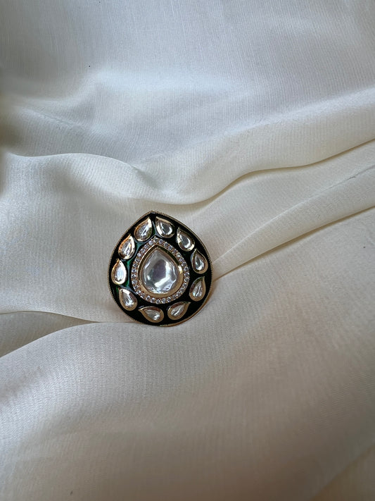 Teardrop Kundan Emerald Meena Ring