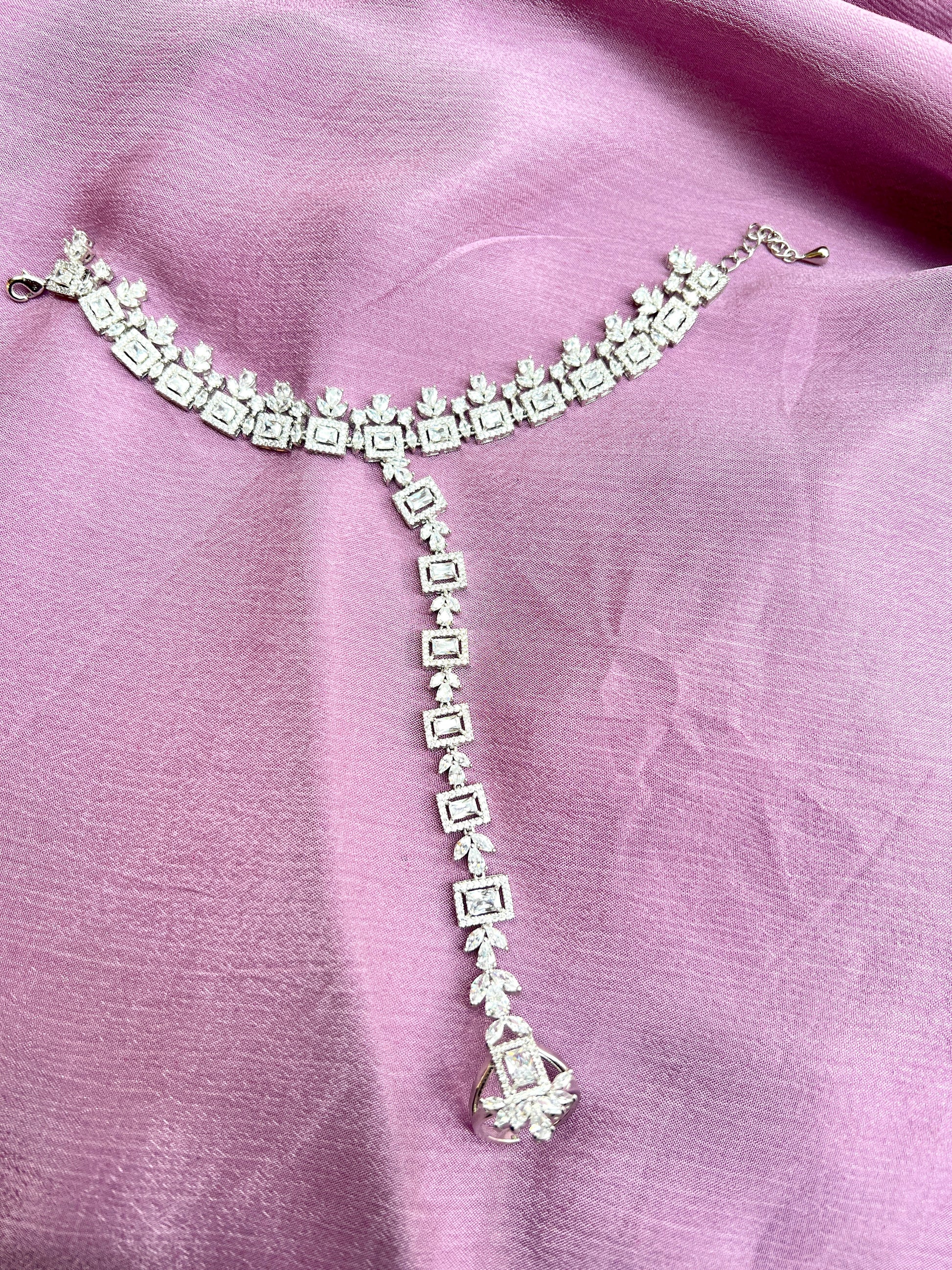 The Magnolia Dropped Set (Neckalace, Earrings and Hand Harness) is an absolute Statement maker to take your outfit a 10 on 10 look. This Necklace is handcrafted to make to shine everytime you adorn it. Perfect for Any Occasion.